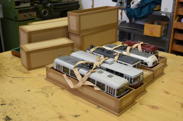 trolley bus model in its unique storage box